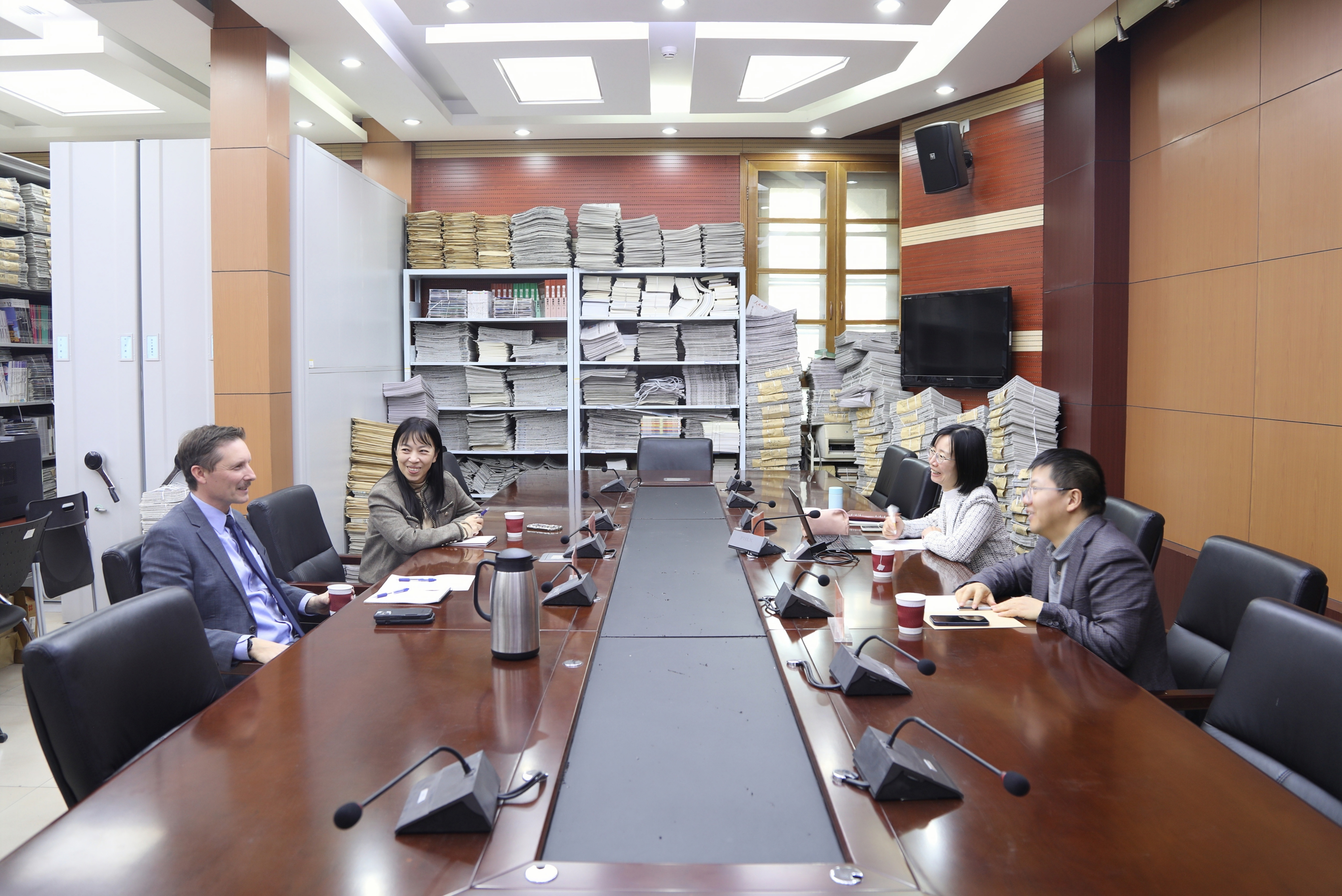 26日,美国驻华使馆政治处一等秘书郭明耀(Benjamin Grob-Fitzgibbon)等到访日本研究所,与综合战略研究室副主任孟晓旭研究员和外交研究室陈静静副研究员进行交流,双方主要就中日美三边关系、东北亚形势等相关问题展开座谈,