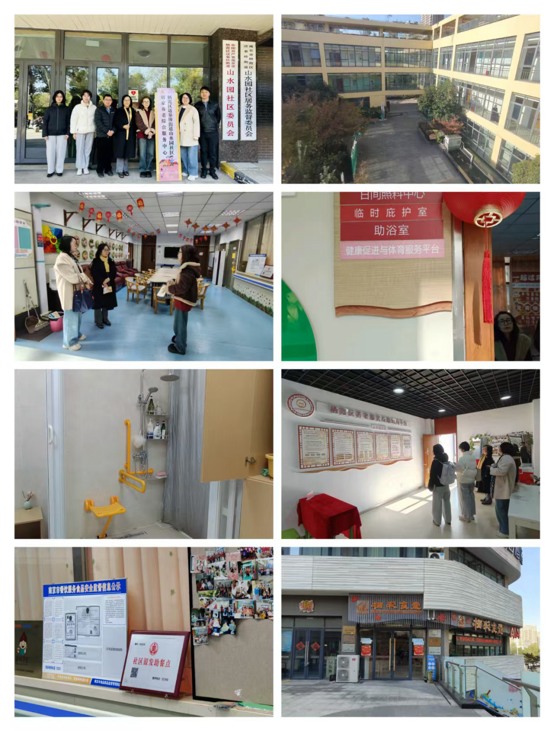11月20日,社会治理创新组一行来到南京市栖霞区迈皋桥街道的山水园社区。社区内嵌的居家养老综合服务中心包含日托中心、康复室、就餐区、助浴区等。日托服务主要在迈皋桥街道业务指导下,由爱德基金会直属社会服务机构“爱德仁谷·好来屋公益服务中心”承接运营,依托爱德仁谷护理院医生、护士、康复师、社工、护理院等跨专业团队,面向60岁以上半失能老人、轻微失智老人以及高龄老人,提供日间照料、健康监测等服务。